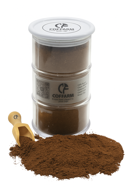 پودر قهوهی اسپرسو کافارم ۱۰۰٪ عربیکا با اسیدیته ملایم، عطر و طعمی دلپذیر دارد. توسط دستانی ماهر به صورت میان_تیره برشتهکاری شده و با درجهی متوسط آسیا میشوند.